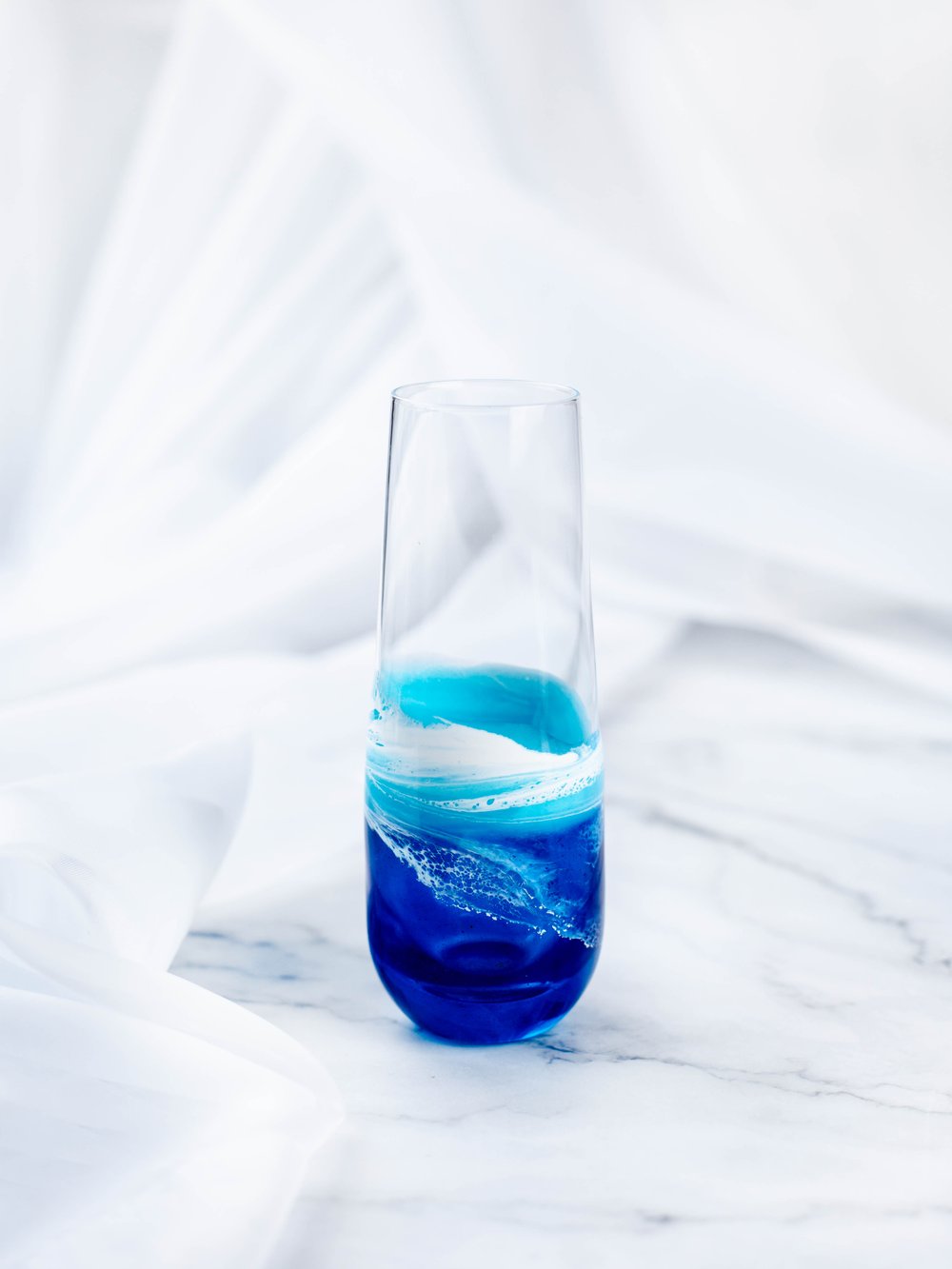 Every champagne flute is unique and cannot be replicated. Anticipate slight variations in the waves and color from the photos shown.