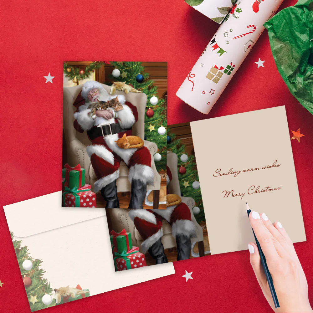 This 5 x 7 Christmas greeting card is blank on the cover, and on the inside shares the message "Sending warm wishes. Merry Christmas". It features art by Thomas Wood, includes a fully printed matching ARTvelope, and is made from 100% post-consumer recycled material. Tree-Free's printing processes are powered by solar energy and are proudly made in the USA.